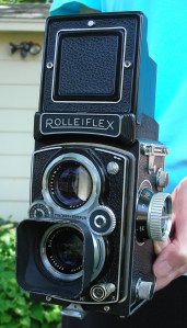 In his next adventure, Johnny Graphic and the Zombie Plague, he’s moved on to a smaller, quicker camera, a twin-lens reflex that I call a Ritterflex. This is kind of what it looks like.